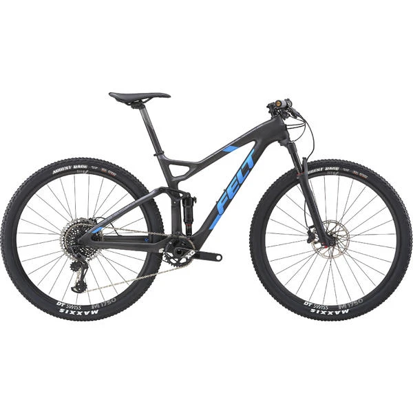 | Frame | Felt XC, 100mm travel, FAST suspension, UHC Advanced carbon fiber, MMC with InsideOut construction, full carbon dropouts, ControlTaper head tube, post disc mount, replaceable derailleur hanger, carbon fiber rocker links, 1x specific, internal derailleur cable routing |