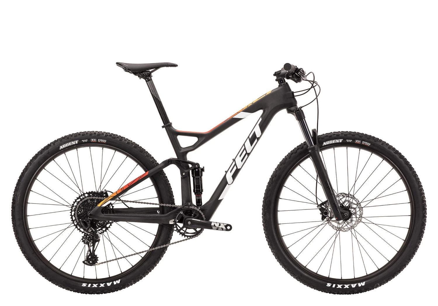 | Frame | Felt XC, 100mm travel, FAST suspension, UHC Advanced carbon fiber, MMC with InsideOut construction, full carbon dropouts, ControlTaper head tube, post disc mount, replaceable derailleur hanger, 73mm threaded BB, carbon fiber rocker links, 1x specific, internal derailleur cable routing |