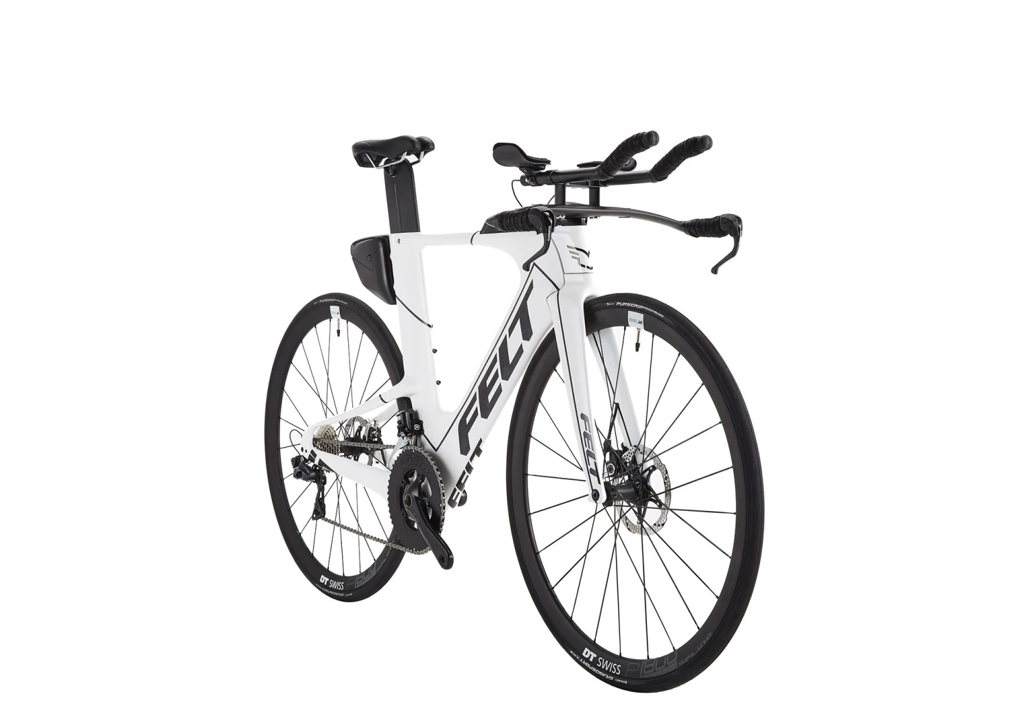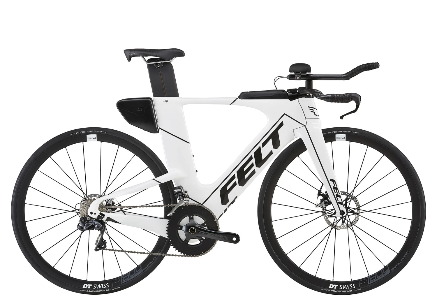 | Frame | Felt Integrated Aero Tri Disc UHC Advanced + TeXtreme carbon fiber, MMC with InsideOut construction, BSA threaded 68mm bottom bracket shell, flat mount disc brake standard, horizontal 12mm thru-axle dropouts, replaceable rear derailleur hanger, internal mechanical or electronic cable routing |